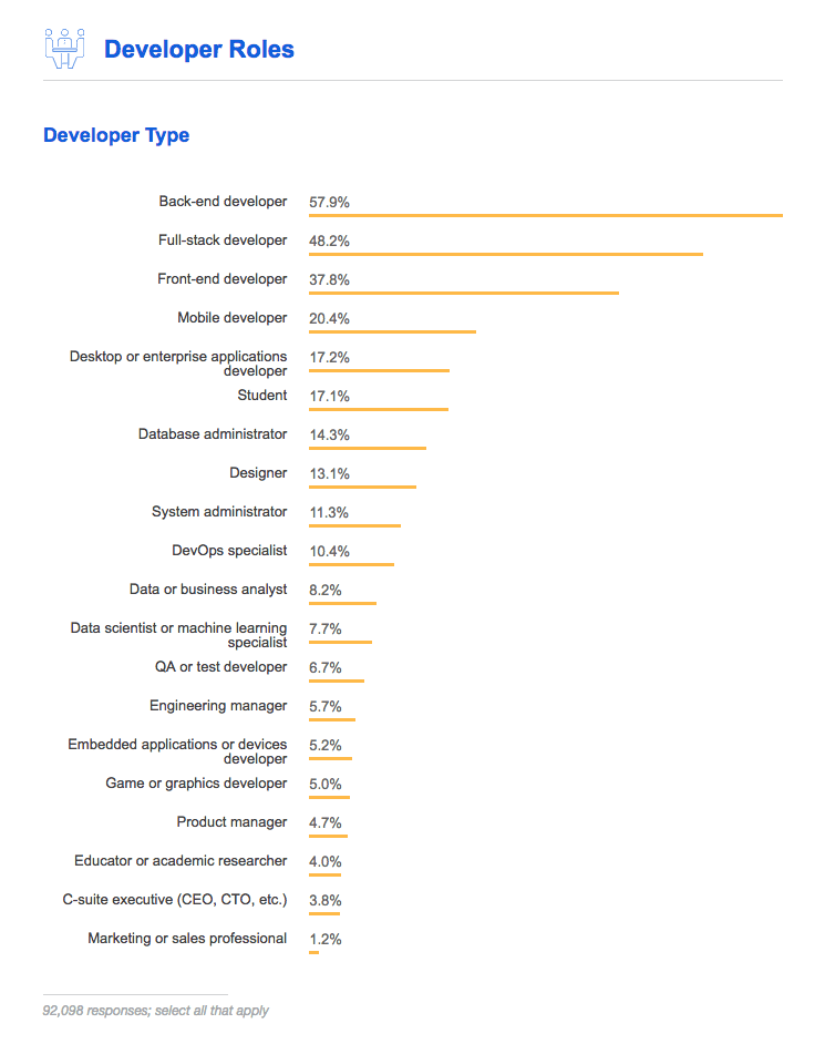A great divide has been brewing in the front-end developer space for several years between two very different types of so-called front-end developers. On the one side, you have JavaScript-focused programmers who write JavaScript for front-end runtimes that likely have computer science skills with a software development history. They more than likely view HTML and CSS as an abstraction (i.e. JSX and CSS in JS). On the other side, you have, most likely, non-computer science educated developers who focus on HTML, CSS, and JavaScript as it specifically pertains to the UI. In 2019, when entering or trying to understand the front-end developer space you will absolutely feel this divide. The term front-end developer is on the verge of meaninglessness without clarifying words to address what type of front-end developer is being discussed.